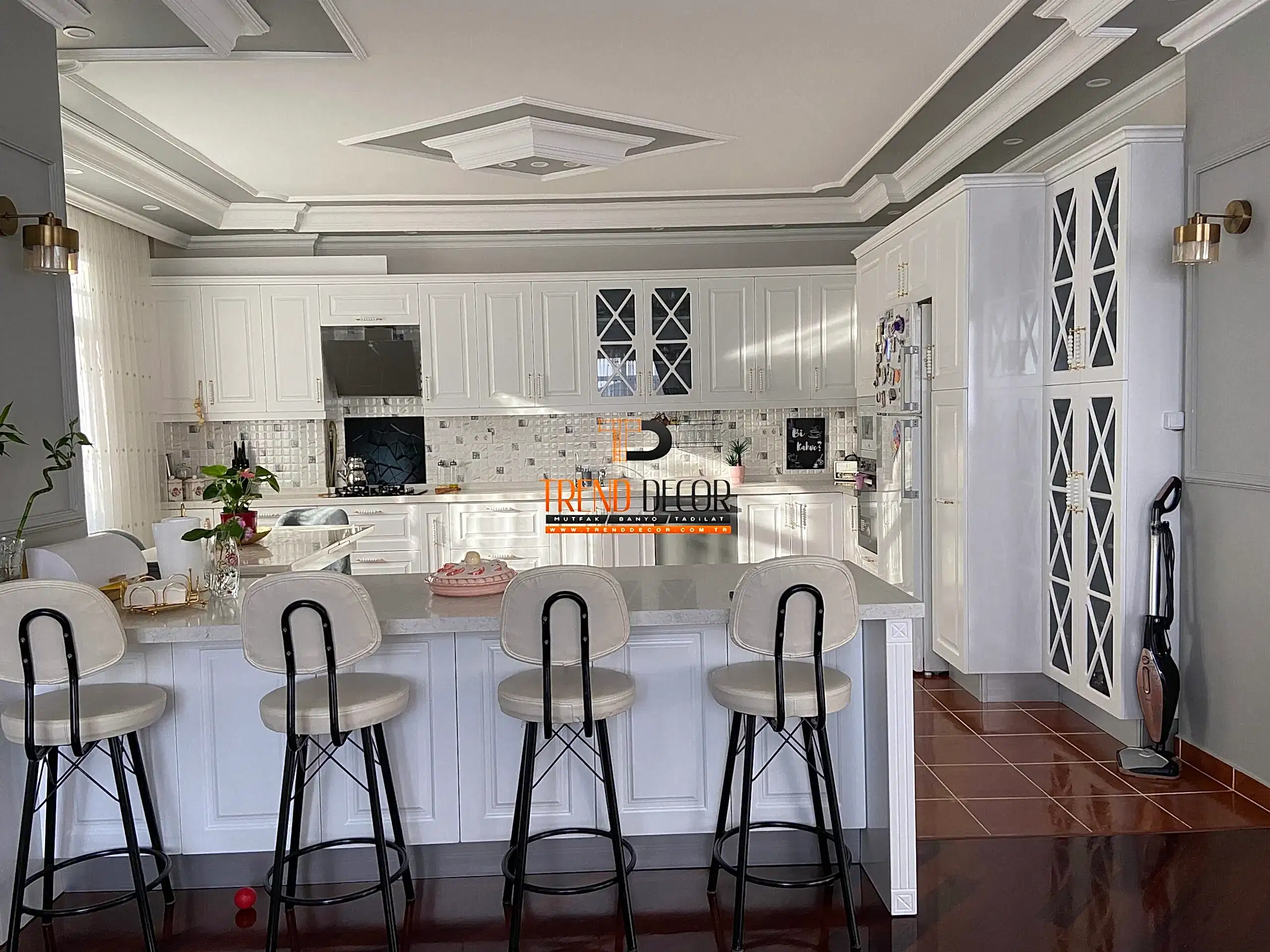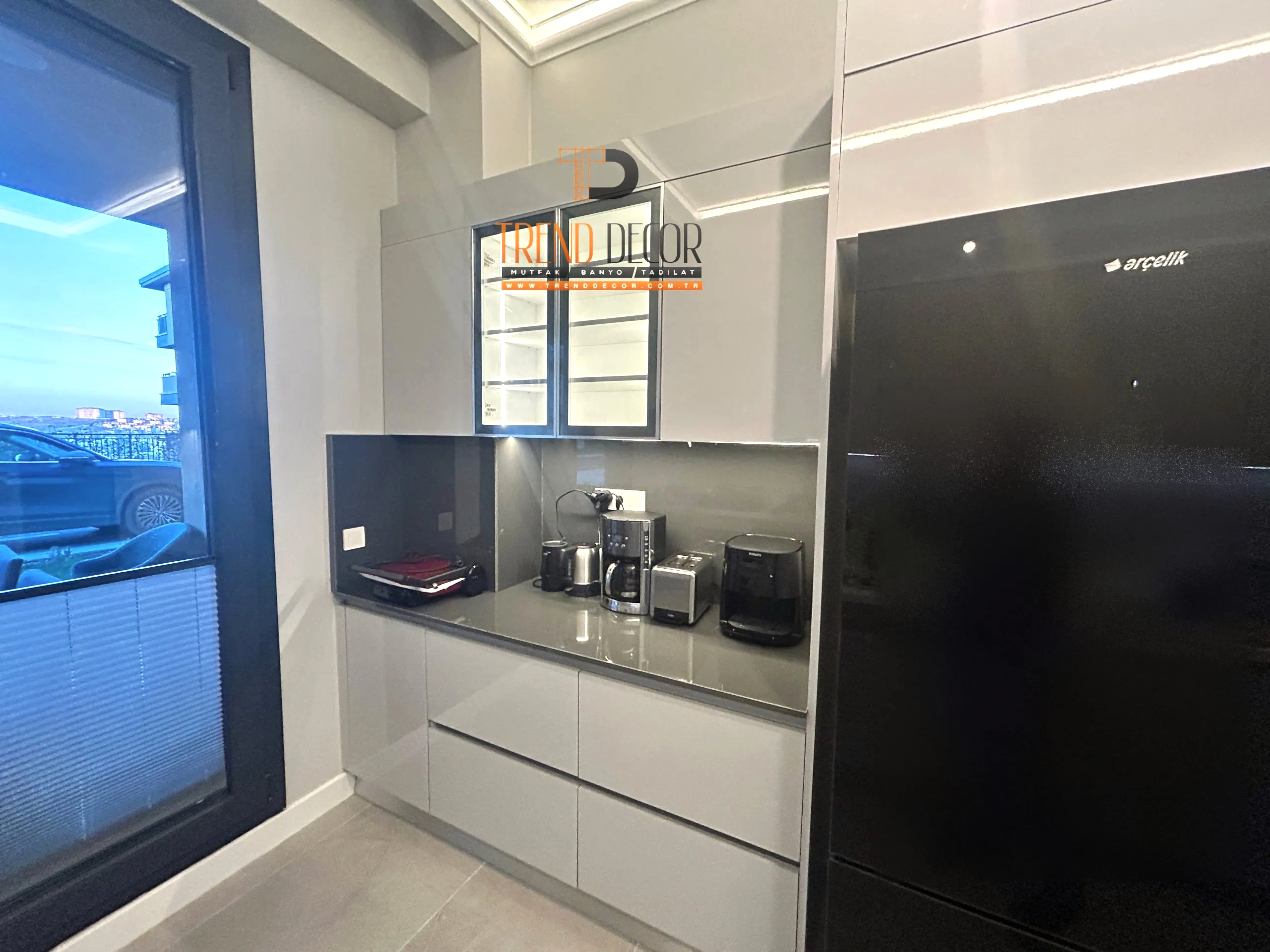 Büyükçekmece Elmas Konakları ikamet eden Ezgi hanımın mevcut mutfak dolabının devamına aynı renklerde uygulamış olduğumuz lake kapaklı kahve köşesi. Kahve köşesi sayesinde ana tezgah üzerinde büyük bir yer işgal eden;…