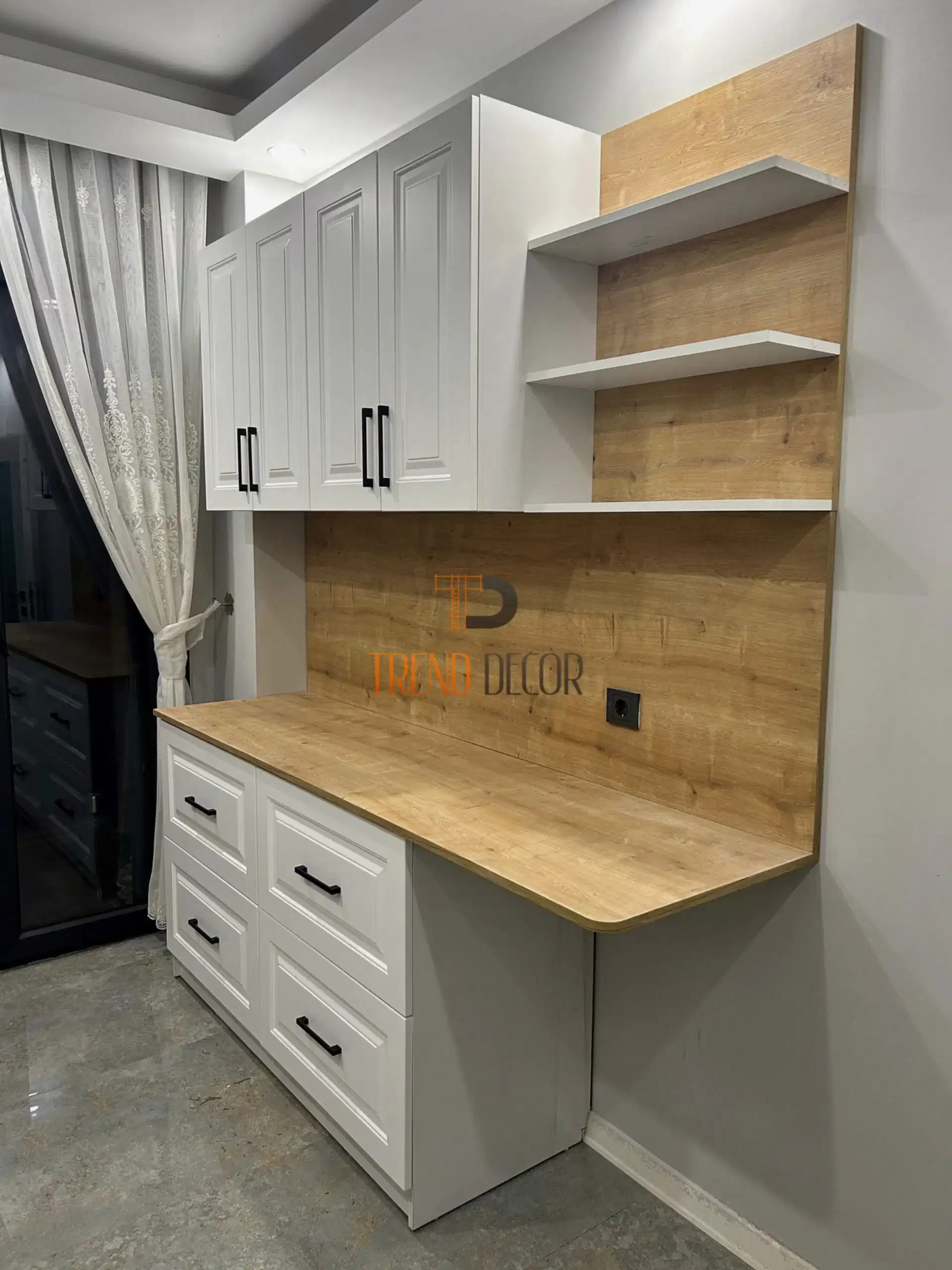 Vadi Evleri 2. Etap'da ikamet eden Şerife hanımın mevcut mutfak dolabının devamına aynı renklerde uygulamış olduğumuz kahve köşesi. Kahve köşesi sayesinde ana tezgah üzerinde büyük bir yer işgal eden; Kahve…